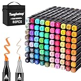 Tongfushop 80 Alkohol Stifte Set, 2 Sekunde Schnell Trocknende Alkohol Marker Set, Doppelseitige Marker Stifte Filzstifte mit Anti-Seepage Abstandshaltern für Malerei, Zeichnung, Design, Manga