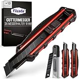 - IDEALES SET: Sie erhalten 3x Profi Cuttermesser und 13x Ersatzklingen mit Abbrechhilfe. Die Klingen des Katermesser befinden sich in einer praktischen Box, die sie vor Rost schützen. Stumpfe Endstück der Papiermesser lassen sich so schnell ersetzen.
