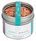 - [GESCHMACK] Für die perfekte Verbindung unterschiedlicher Geschmacksrichtungen bietet sich wohl nichts besser als geschrotete Chilischoten mit einer guten Prise Meersalz; Hergestellt aus feinem Meersalz und mildem Chili entsteht in unserem Chilisalz eine Kombination aus der Schärfe des Chilis mit einer dezent salzigen Geschmacksnote.
