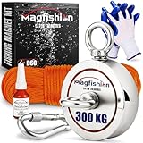 - ✅ KOMPLETTSET - Fischmagnet 300kg (2 x 150kg) Zugkraft Magnet - 20 meter Seil - Karabiner - Schraubensicherungsmittel - Handschuhe