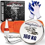 - ✅ KOMPLETTSET - Fischmagnet 160kg Zugkraft Magnet - 20 meter - Karabiner - Schraubensicherungsmittel - Handschuhe
